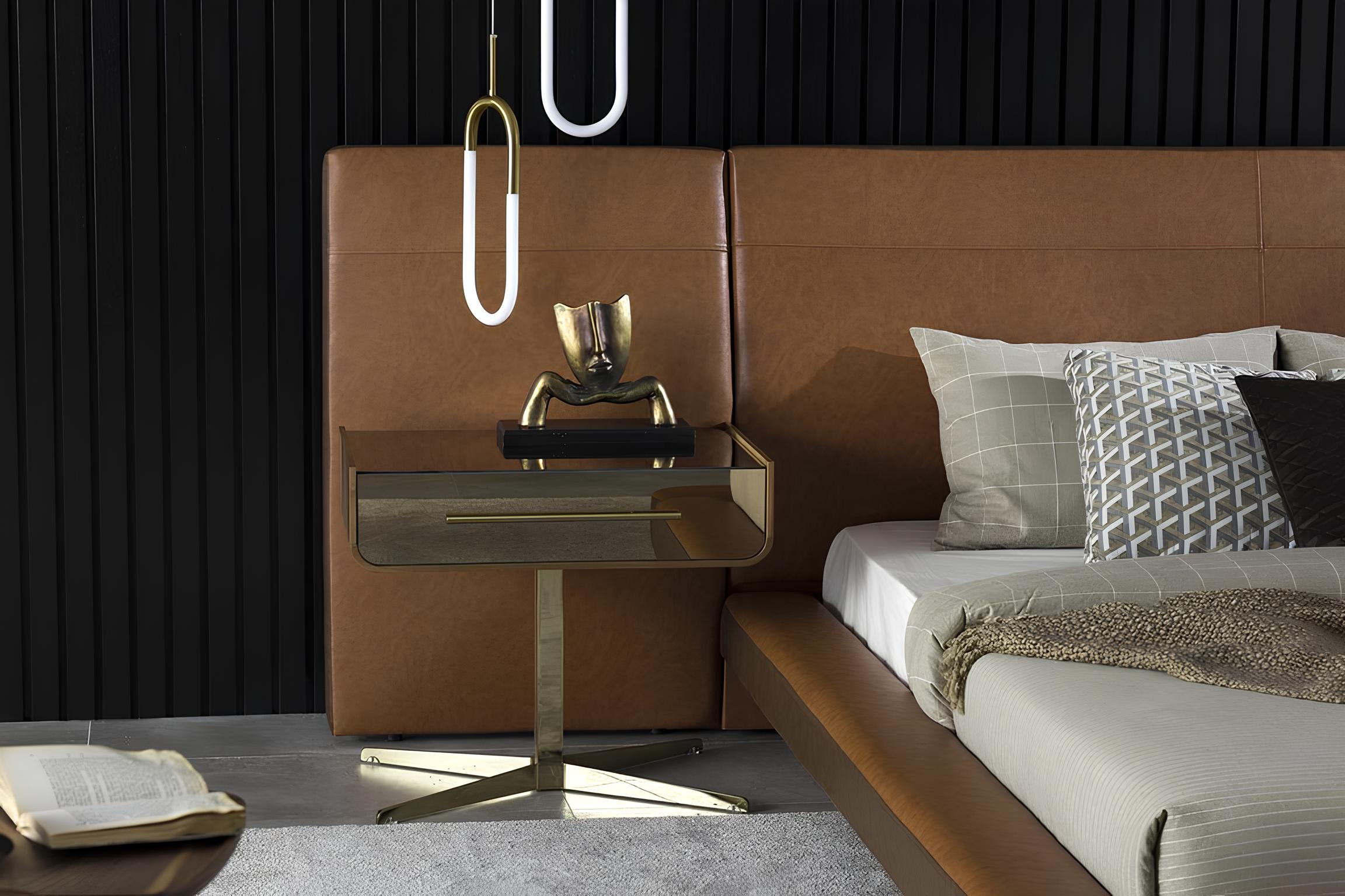 Design seng til soveværelset med to luksuriøse glas natborde
