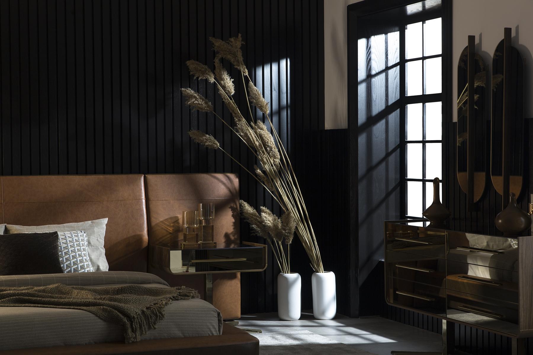 Design seng til soveværelset med to luksuriøse glas natborde | xxlmobler.dk