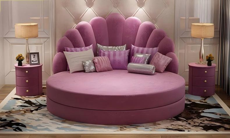 Elegant hvid rund seng design musling polstret lilla-sølv moderne værelse | xxlmobler.dk