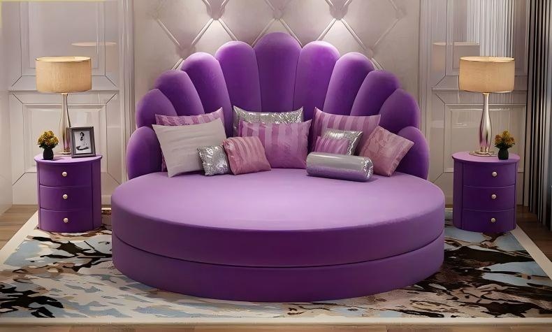 Elegant hvid rund seng design musling polstret lilla-sølv moderne værelse