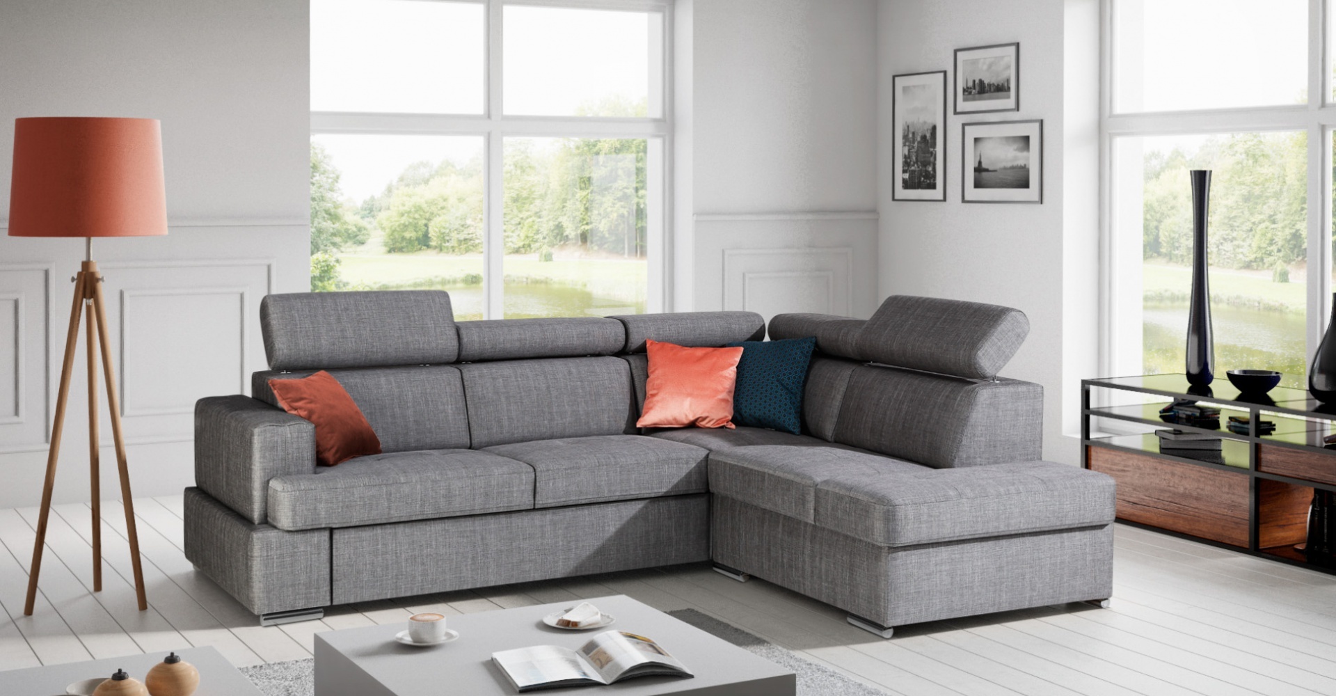 Moderne L-formet sofa med sovefunktion