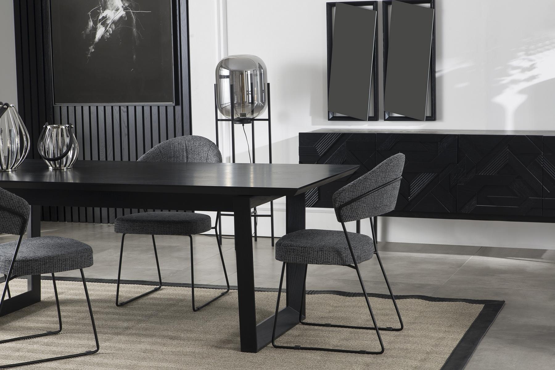 Oplev det enestående spisestue sæt med bord og 4 polstrede stole, der forener elegance og funktionalitet i en harmonisk enhed. Det strømlinede design fremhæver den dybe sorte polyester, som tilføjer et strejf af sofistikeret modernitet til ethvert hjem. Bordets generøse størrelse inviterer til uforglemmelige sammenkomster, mens de polstrede stole tilbyder en sublim komfort, der indbyder til lange middage i godt selskab. Dette sæt er ikke blot en investering i møbler, men i en livsstil præget af kvalitet og stil. Med 20 års erfaring i at skabe luksuriøse møbler, er dette spisestue sæt den perfekte tilføjelse til dit hjem, der garanterer en eksklusiv atmosfære og tidløs skønhed.