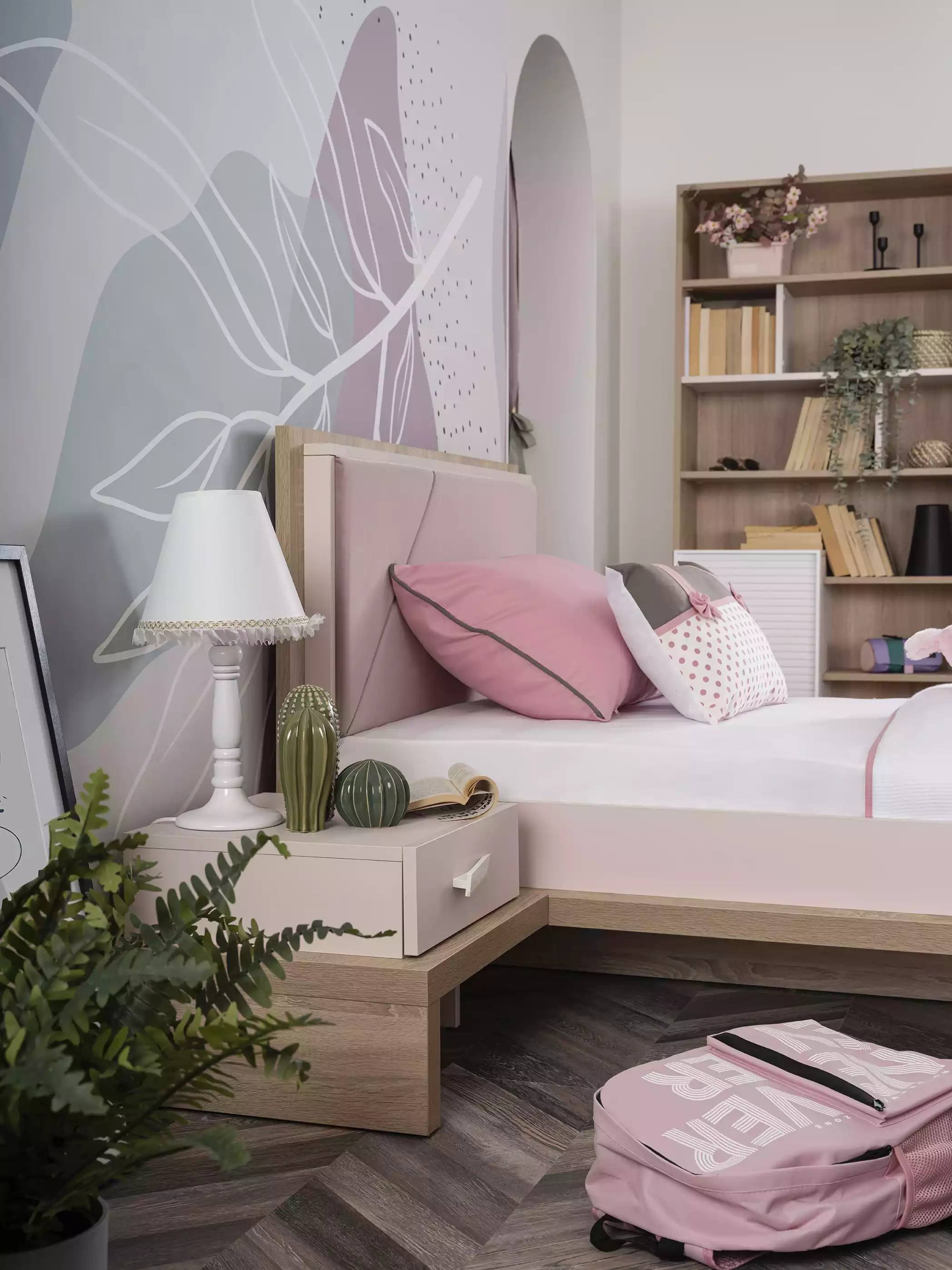 Møbel sæt til børn seng værelse lyserød 8 dele | xxlmobler.dk