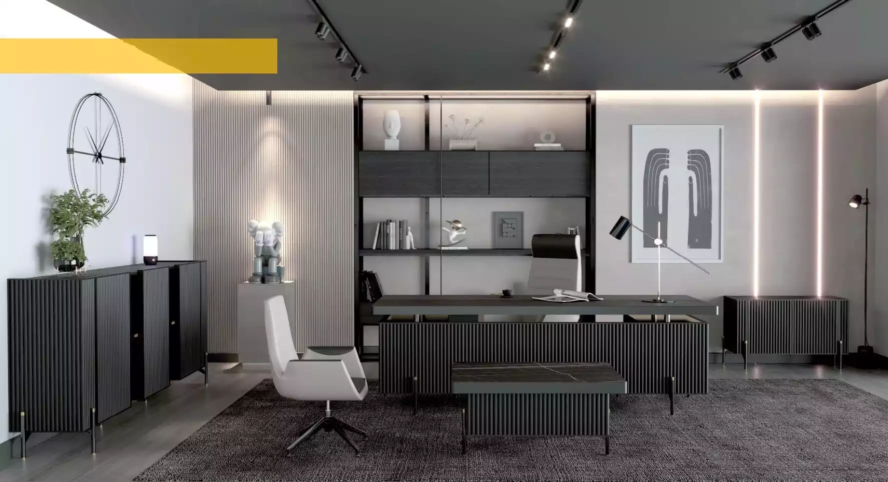 Oplev det ultimative inden for kontorindretning med vores eksklusive designkontormøbler. Dette sorte kontormøbel kombinerer en tidløs æstetik med en uovertruffen funktionalitet, perfekt til den moderne professionel, der værdsætter elegance. Bordets strømlinede linjer og kommodens subtile detaljer skaber et harmonisk miljø, der fremmer kreativitet og fokus. Hver komponent er omhyggeligt fremstillet med kvalitetsmaterialer, der sikrer holdbarhed og stil. Giv dit arbejdsmiljø et løft med dette unikke stykke, der ikke blot er en investering i funktionalitet, men også i en livsstil præget af luksus og raffinement. Oplev forskellen med 20 års ekspertise inden for eksklusiv møbeldesign.