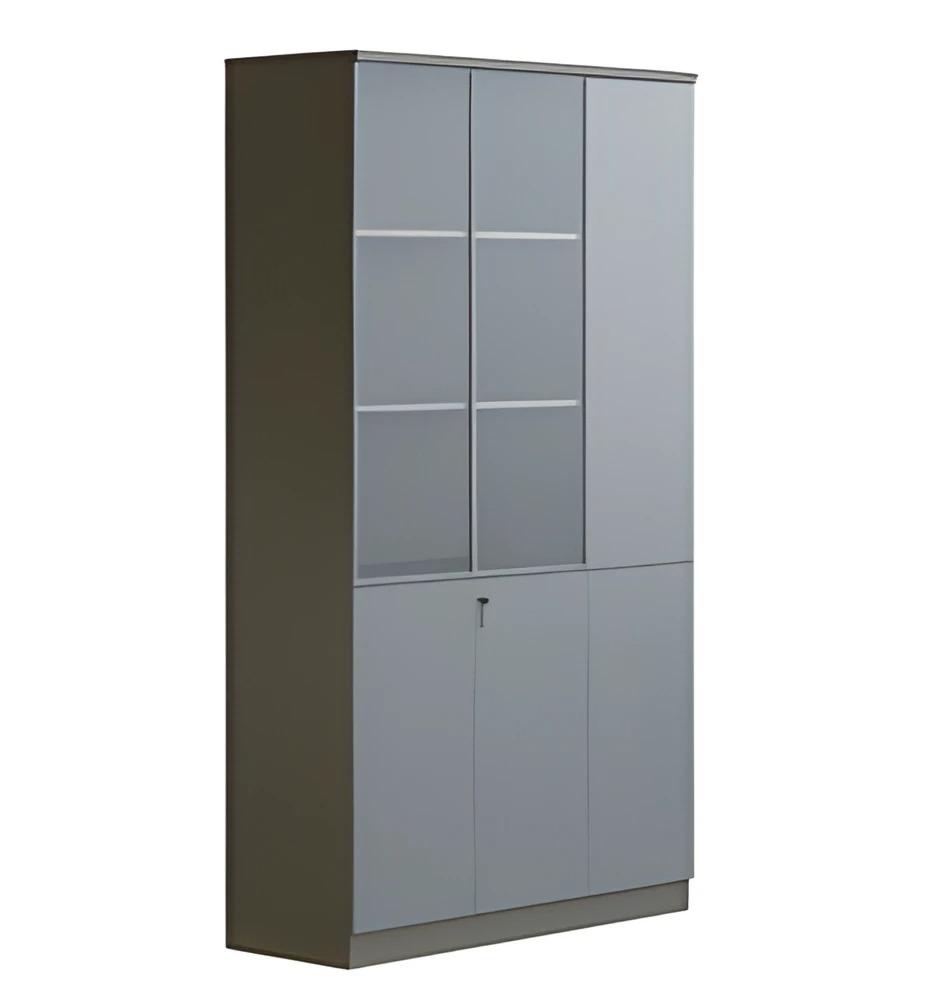 Moderne grå kontorskab med glasdøre, låsbar, stort opbevaringsrum