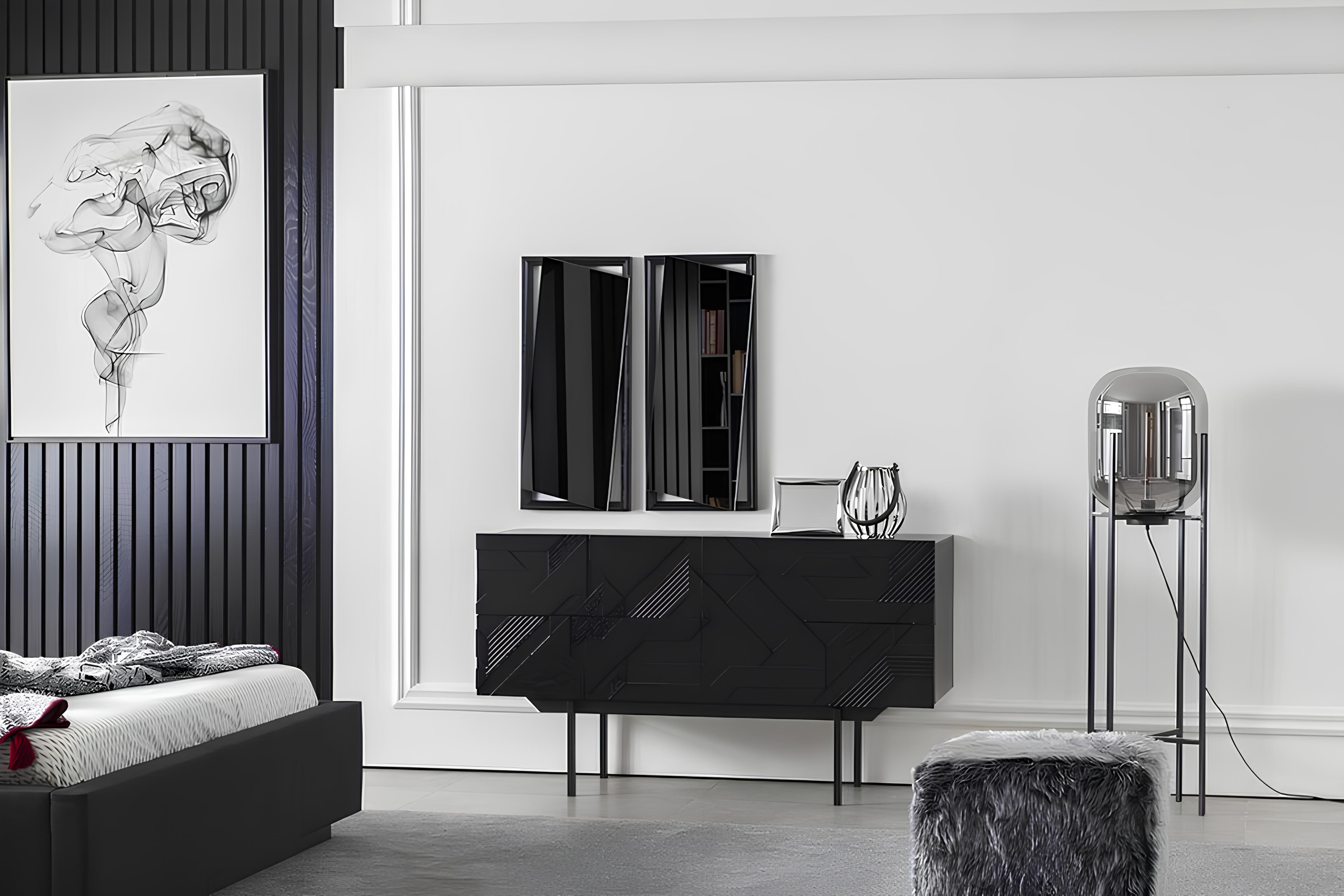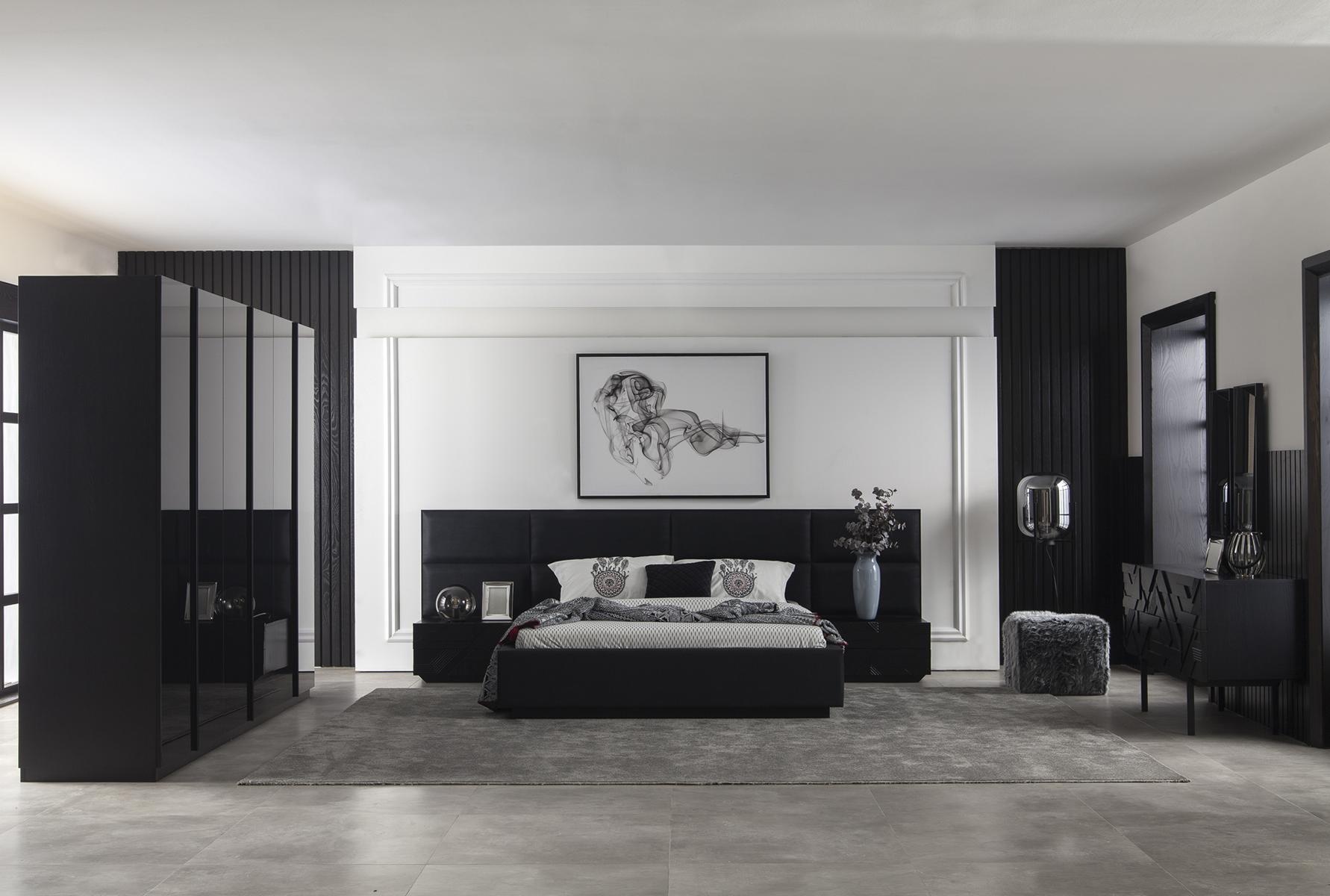 Luksus sort soveværelse med skab, kommode og natborde 5 stk. | xxlmobler.dk