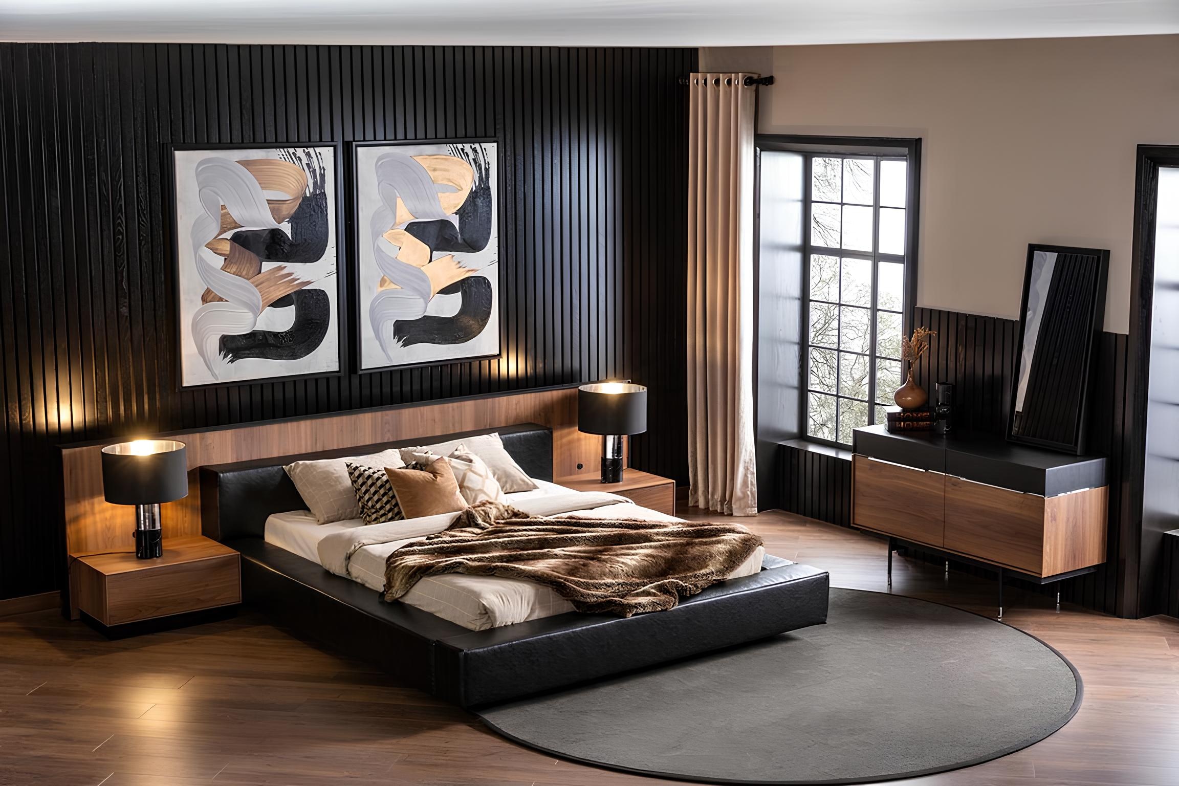Luksus soveværelsesensemble med natbord, skab, bord og seng 6 dele | xxlmobler.dk