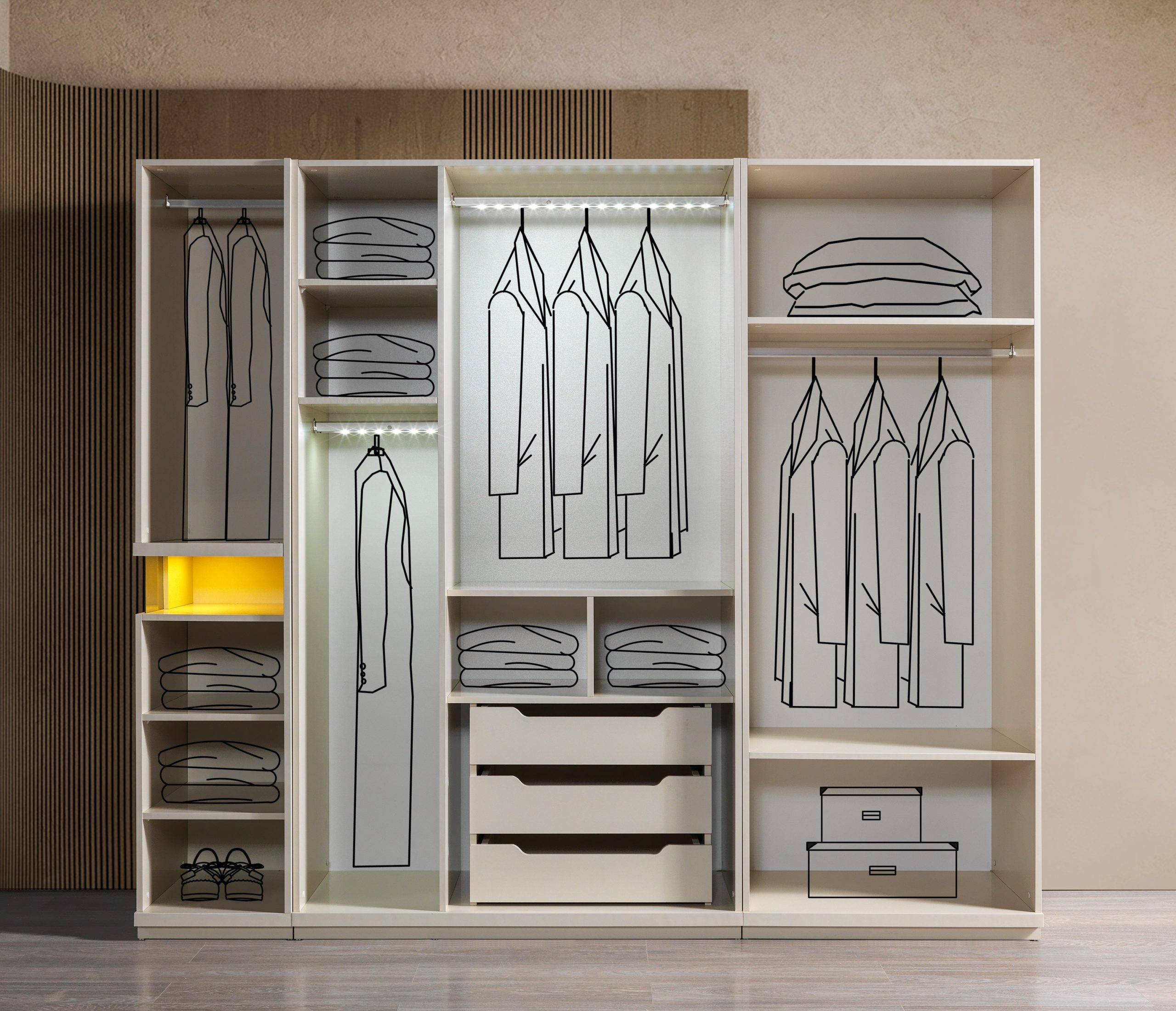 Den Moderne 251 cm garderobe til soveværelse kombinerer funktionalitet med en tidløs elegance, der forvandler dit rum til en oase af stil. Med sine dimensioner på 251 x 60 x 216 cm tilbyder den generøst med opbevaringsplads, samtidig med at den bevarer en slank og raffineret profil. Den delikate beige nuance tilføjer en blød varme, der harmonerer med enhver indretning og skaber en indbydende atmosfære. Dette møbel er ikke blot en opbevaringsløsning, men et statement om en eksklusiv livsstil. Som en del af en 20-årig arv inden for luksusmøbler, repræsenterer denne garderobe en investering i kvalitet og æstetik, der vil pryde dit hjem i mange år fremover.