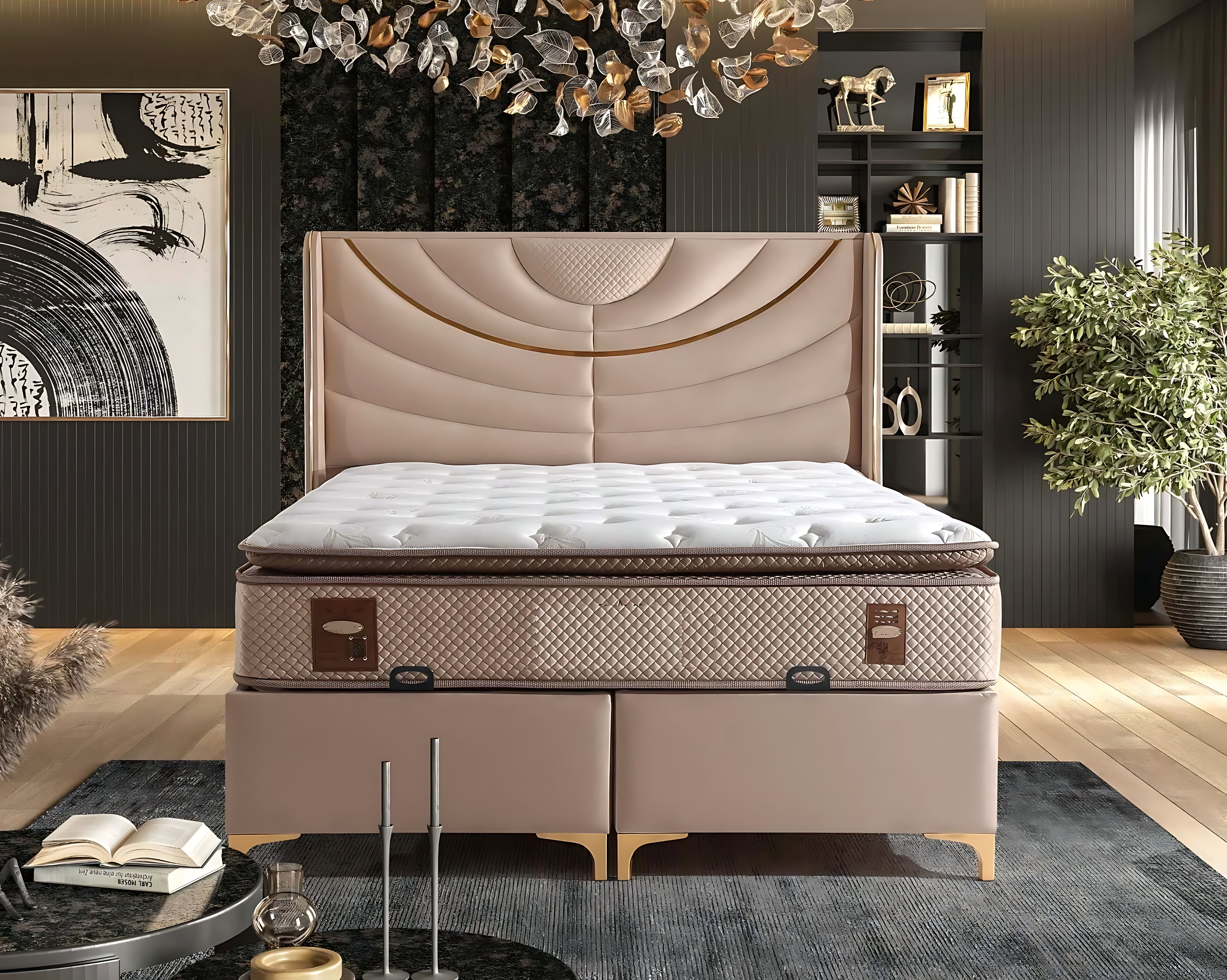Oplev den ultimative luksus med denne elegante beige seng, som forener en tidløs æstetik med uovertruffen komfort. Den bløde tekstilmadras tilbyder en sublim støtte, der sikrer en uforglemmelig søvnoplevelse. Sengens eksklusive beige træramme tilføjer et strejf af varme og raffinement til ethvert soveværelse, og dens enkle linjer skaber en harmonisk atmosfære. Designet er skabt med fokus på kvalitet og holdbarhed, hvilket gør denne seng til et ideelt valg for den kræsne ejer. Med over 20 års erfaring i at tilbyde luksusmøbler, repræsenterer dette møbel en investering i en livsstil præget af elegance og stil. Gør denne seng til hjertet af dit hjem.