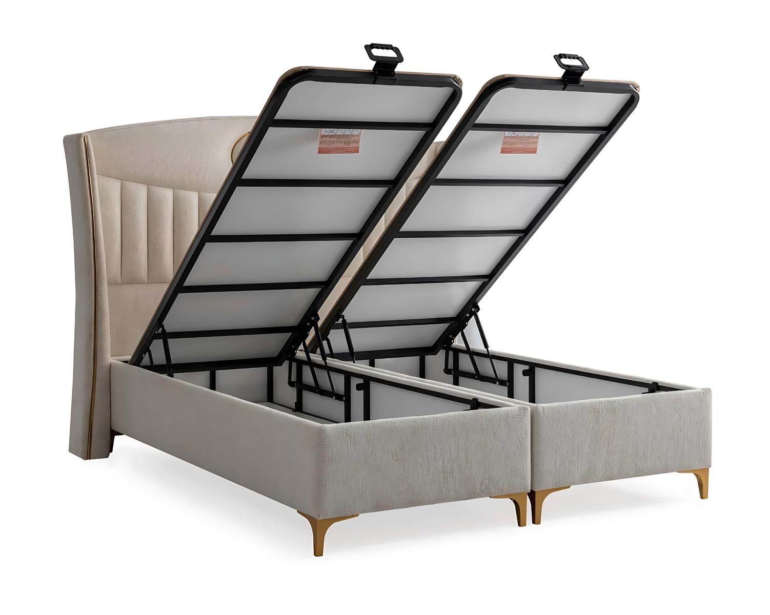 Elegant seng med madras i beige af tekstil og træ | xxlmobler.dk