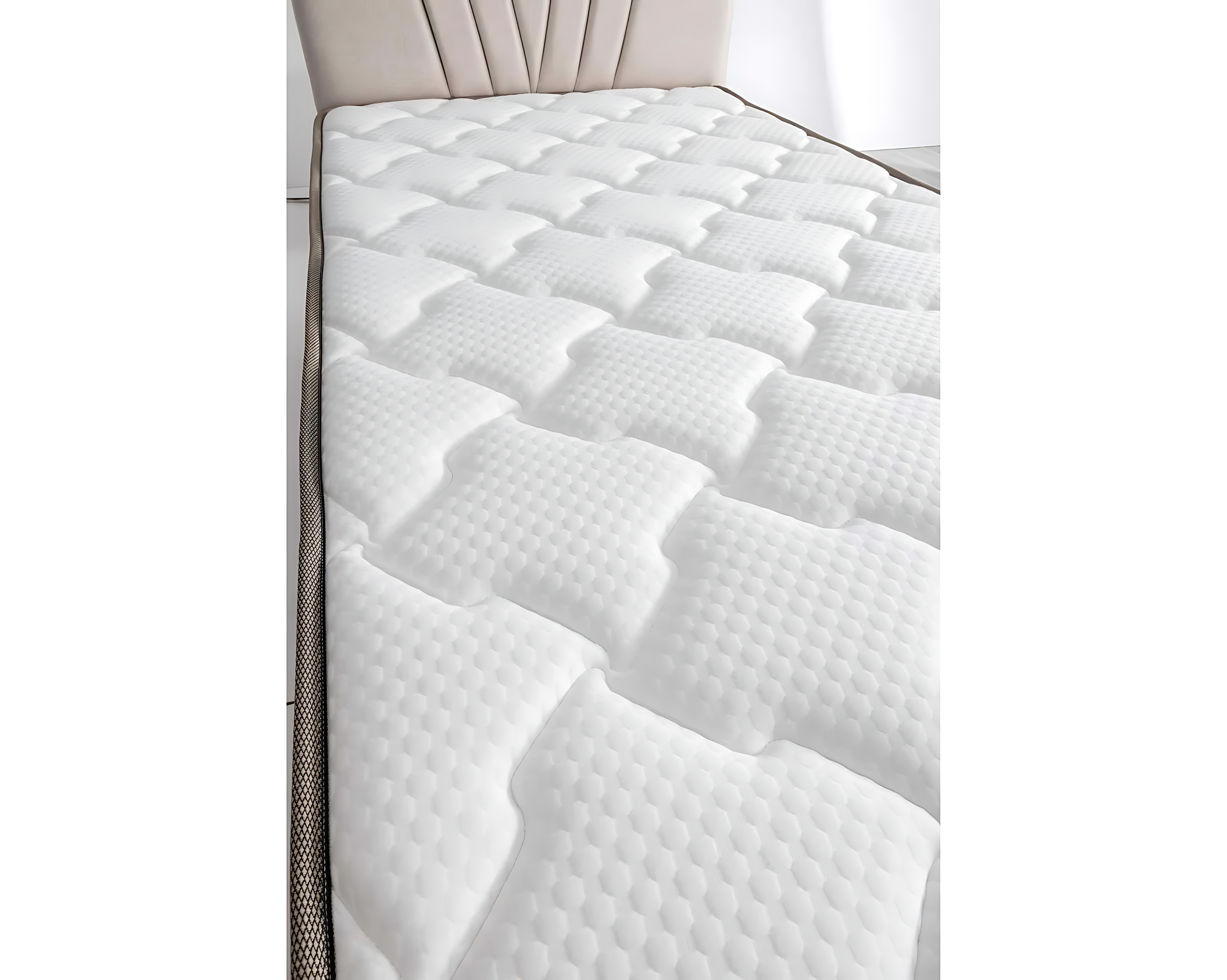 Elegant seng med madras i beige materiale | xxlmobler.dk