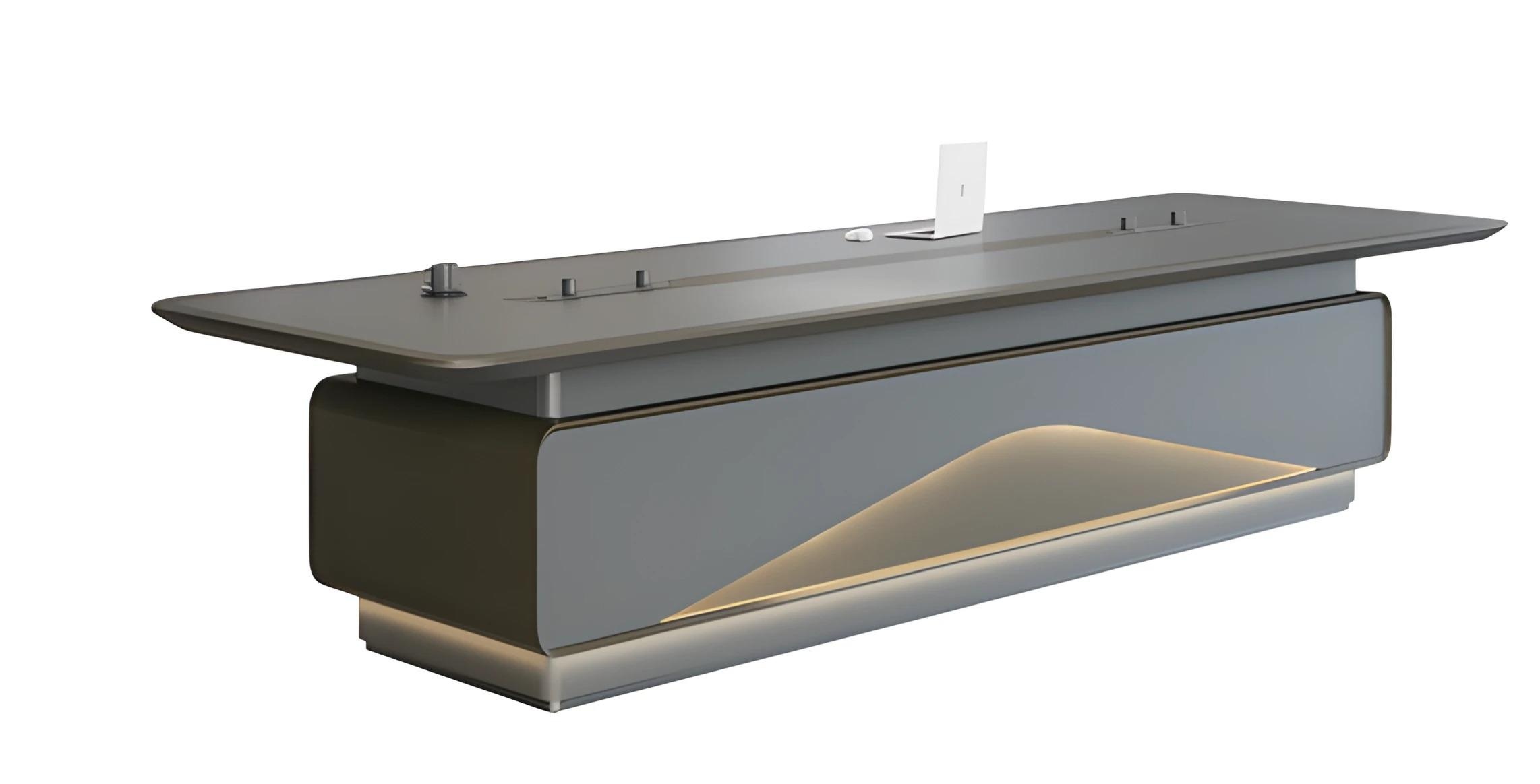 Luksus grå konferencebord med LED-belysning og kabelstyring