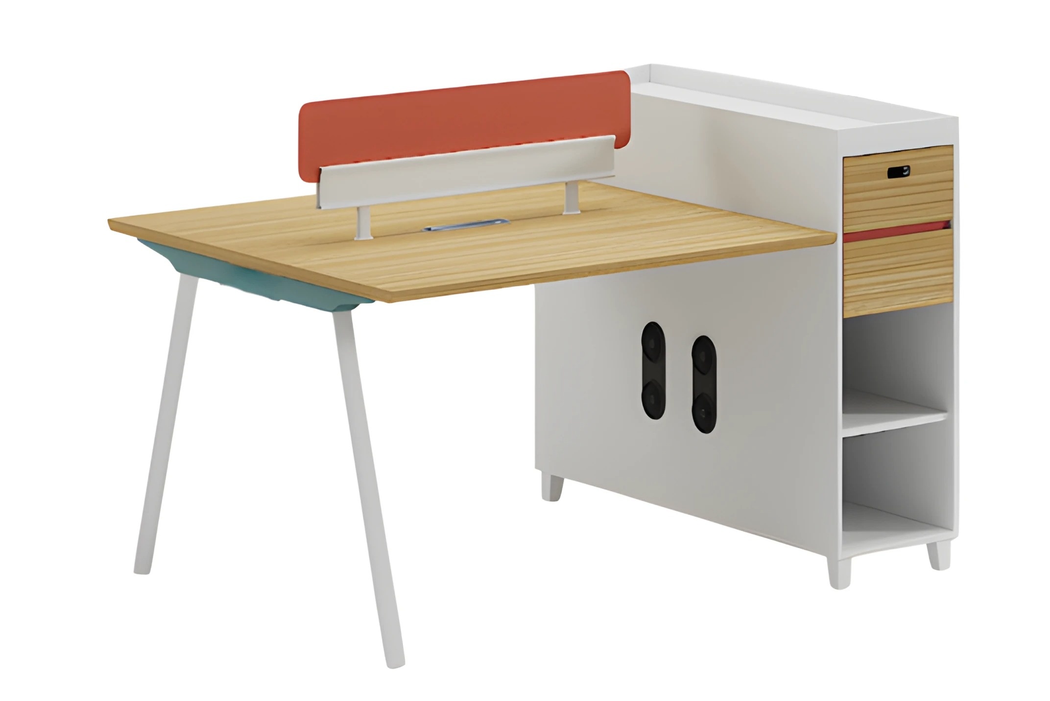 Træbord med ryg, opbevaringsplads og hylder, moderne design