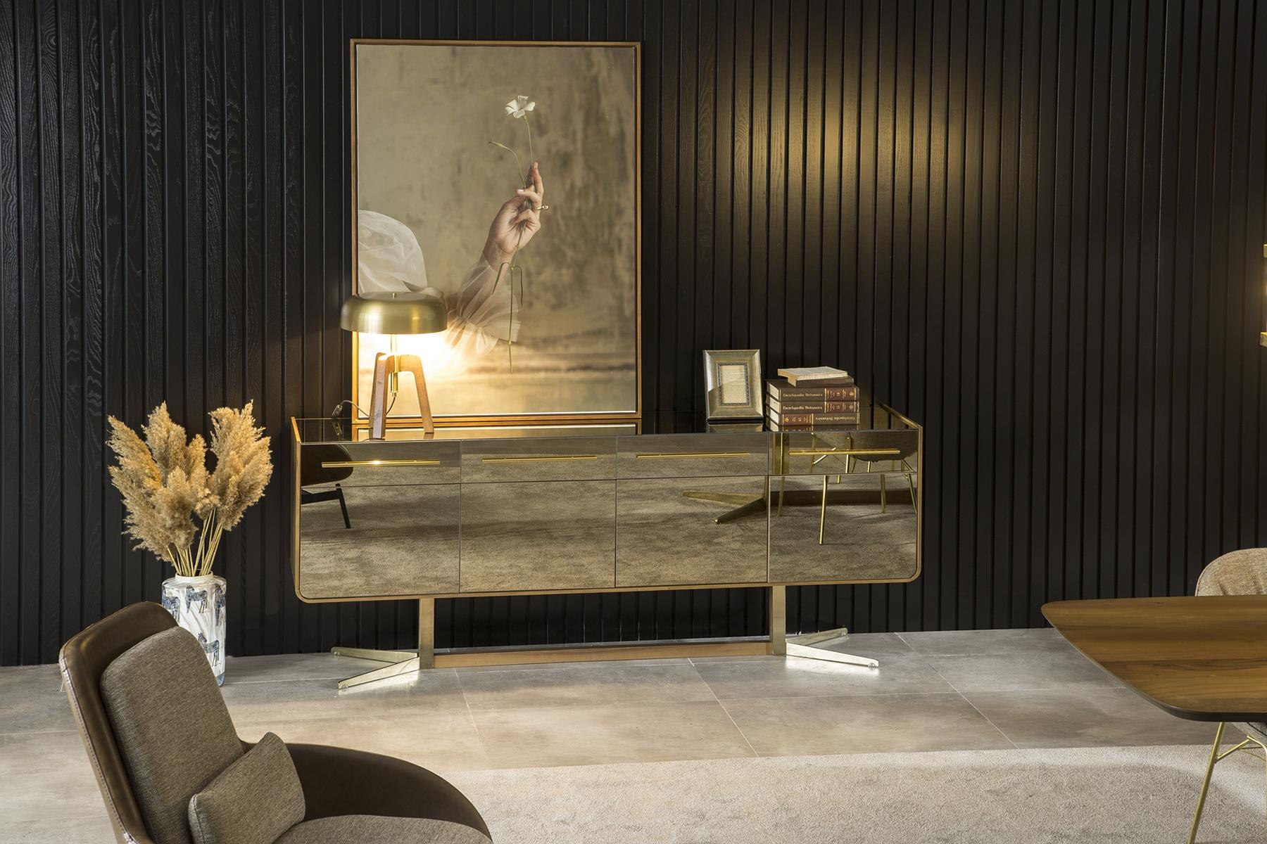 Mobil sidekonsol Specchio Armadio Lowboard med spejlfacader er et mesterværk, der forener funktionalitet og æstetik. Den dybe brune finish fremhæver den luksuriøse karakter, mens de elegante spejlfacader skaber en illusion af rummelighed og lys. Dette lowboard er designet til at være både en smuk opbevaringsløsning og et stilfuldt statement i ethvert rum. Med sit tidløse design og kvalitetsmaterialer, som er kendetegnende for vores 20-årige arv inden for luksusmøbler, tilbyder denne sidekonsol en uovertruffen elegance. Vælg Specchio Armadio for at fuldende dit hjem med et stykke, der udstråler en eksklusiv livsstil.