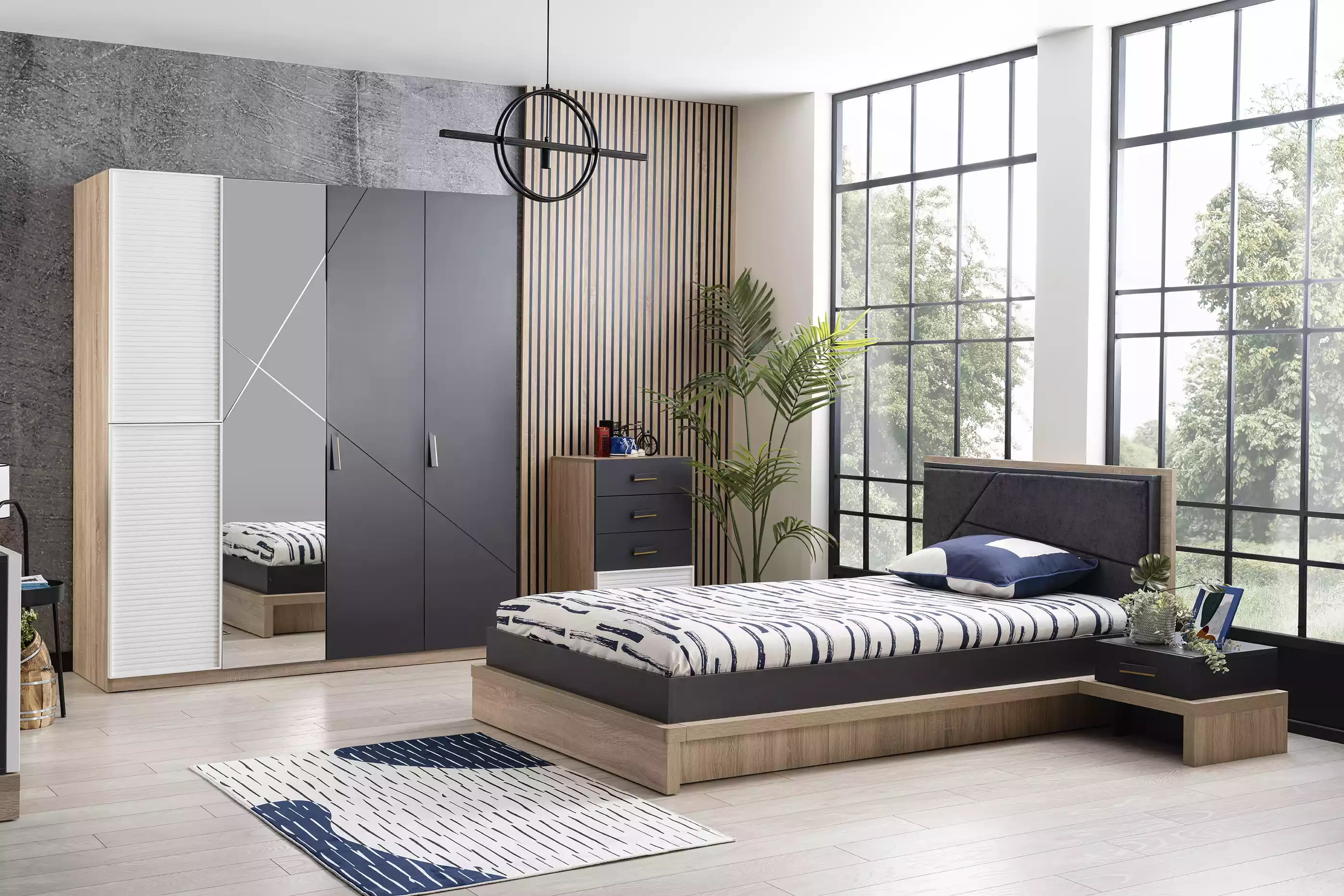 Skab med 4 døre i grå træ med spejl til børneværelse