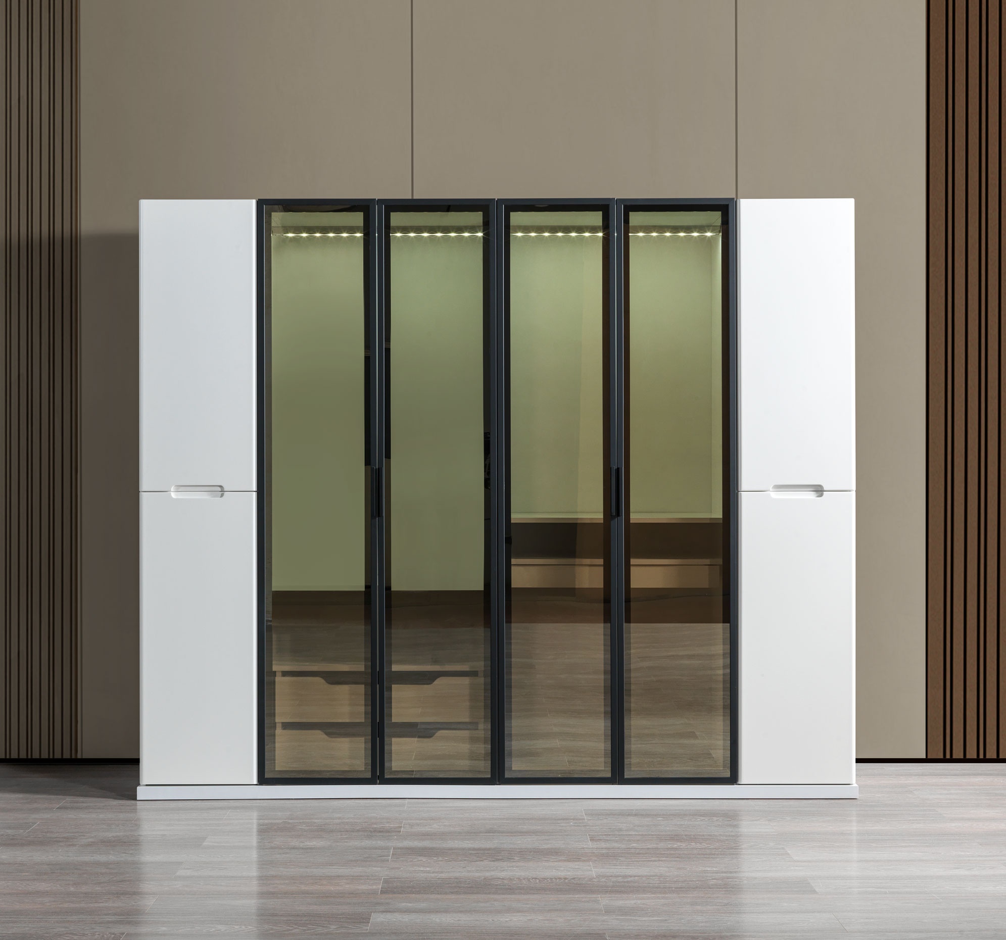 Den Moderne 255 cm garderobe er et mesterværk af tidløs elegance, omhyggeligt designet til at opfylde kravene fra den moderne livsstil. Den strømlinede hvidlakerede overflade tilføjer en lys og åben atmosfære til ethvert rum, mens den generøse størrelse giver rigelig plads til opbevaring af jeres mest værdifulde garderobe. Hver detalje er omhyggeligt udformet for at sikre en perfekt balance mellem funktionalitet og æstetik. Dette møbel er mere end blot opbevaring; det er en erklæring om stil og raffinement, der indfanger essensen af et eksklusivt hjem. Vælg den Moderne garderobe og oplev, hvordan den transformerer dit rum til en oase af luksus.