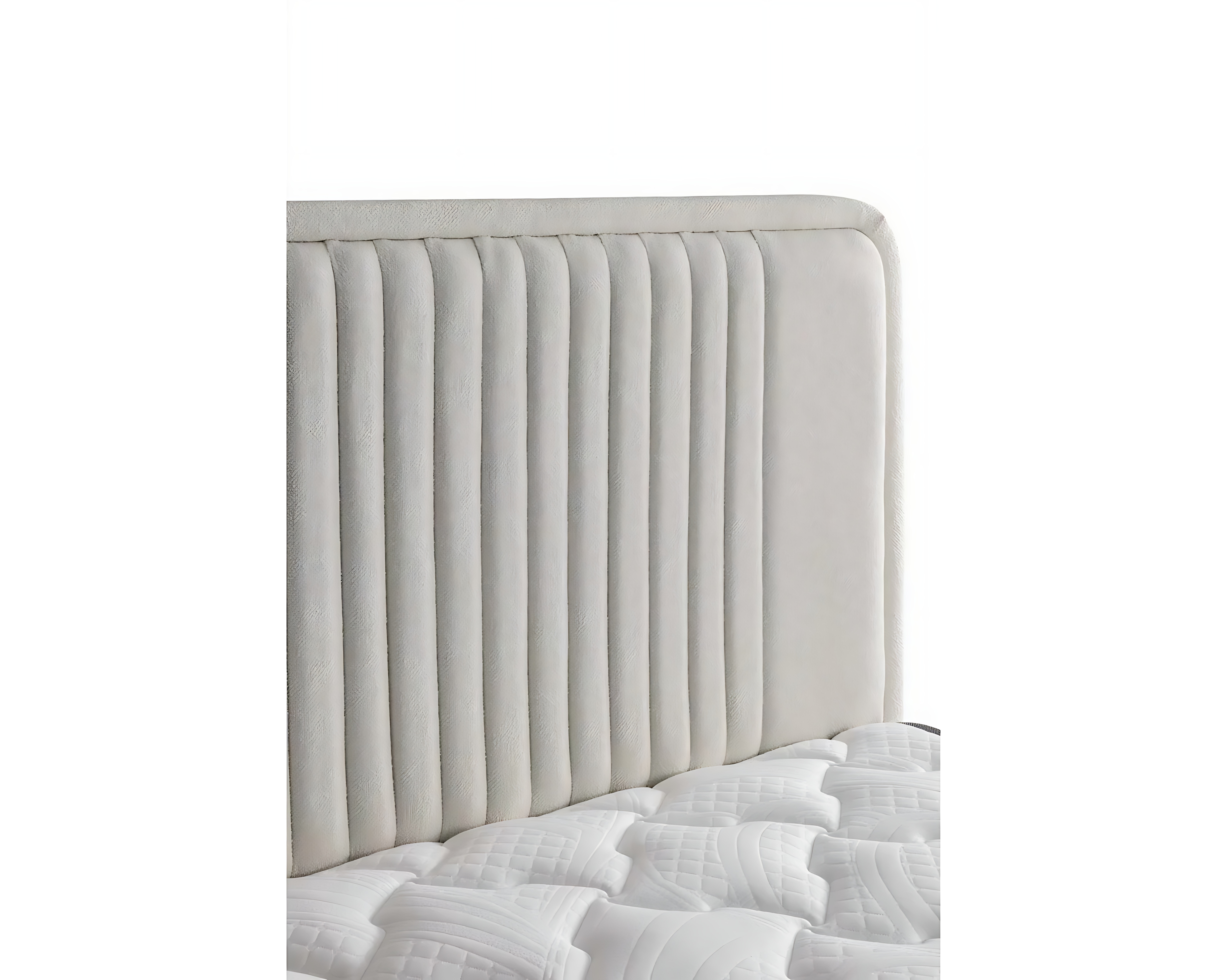 Elegant seng med madras i beige materiale og træ | xxlmobler.dk