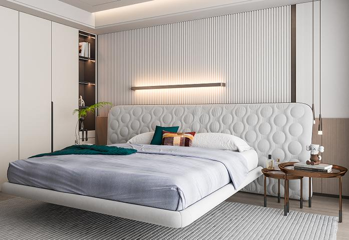 Den moderne hvid polstrede seng med sit minimalistiske runde design er en uovertruffen manifestation af elegance og funktionalitet. Det bløde, hvide stof indhyller sengen i en luksuriøs omfavnelse, der tilføjer en subtil lethed til ethvert soveværelse. Den strømlinede form fremhæver den tidløse skønhed ved minimalistisk design, hvilket gør den til et centralt element i et eksklusivt hjemmemiljø. Med over 20 års erfaring i at skabe luksuriøst møbeldesign er denne seng mere end blot et møbel; den er en investering i livskvalitet og stil. Vælg denne seng for at omfavne et liv med velvære og æstetisk perfektion, der er kendetegnende for den moderne livsstil.