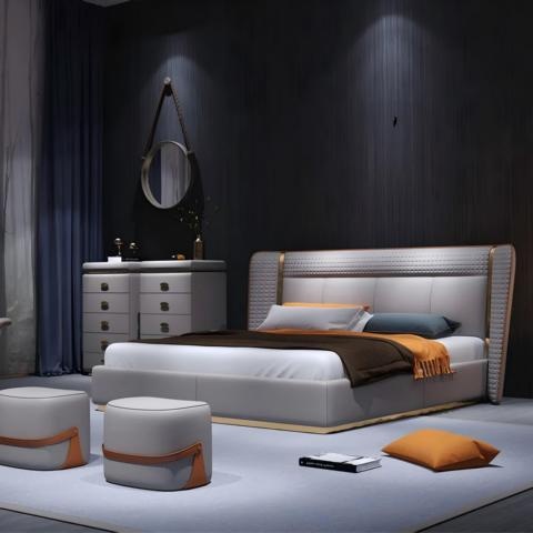 Oplev den moderne luksuriøse polstrede seng i beige, et sandt mesterværk af komfort og elegance. Denne seng, udført i det fineste beige stof, tilfører ethvert soveværelse en sofistikeret atmosfære. Den bløde polstring omfavner kroppen, mens den tidløse farve harmonerer med et væld af indretningsstile. Skabt med præcision og omtanke, er denne seng ikke blot et møbel, men en investering i en eksklusiv livsstil. Med 20 års erfaring i at tilbyde luksusmøbler, repræsenterer vores brand det ypperste inden for kvalitet og design. Vælg denne seng for at forvandle dit hjem til et fristed af stil og velvære.