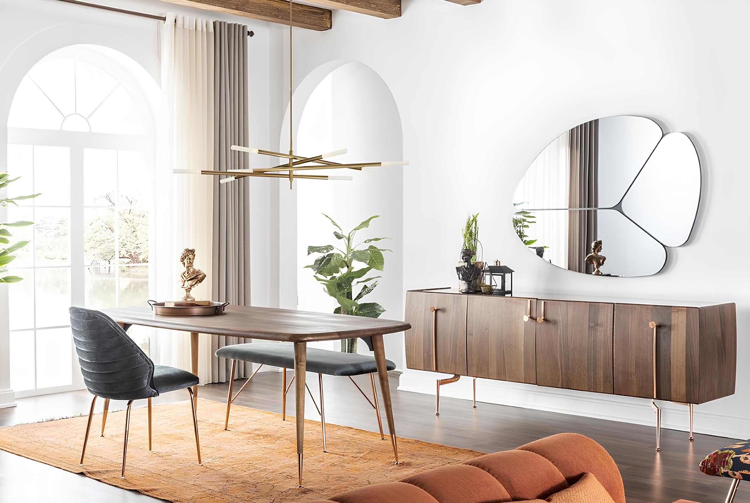Oplev det elegante spisebord sæt med stole og buffet i brunt træ, der omfavner en tidløs skønhed og eksklusivitet. Dette 10-delte sæt kombinerer funktionalitet med raffineret design, skræddersyet til det moderne hjem. Det varme, brune træ tilføjer en naturlig elegance, der skaber en indbydende atmosfære til enhver middagsselskab. Hver stol er omhyggeligt designet for optimal komfort, mens buffeten tilbyder generøs opbevaringsplads med stil. Den sublime finish fremhæver håndværkets kvalitet, som kun 20 års erfaring i luksusmøbler kan garantere. Vælg dette sæt som en investering i et livsstil, der værdsætter det ekstraordinære.
