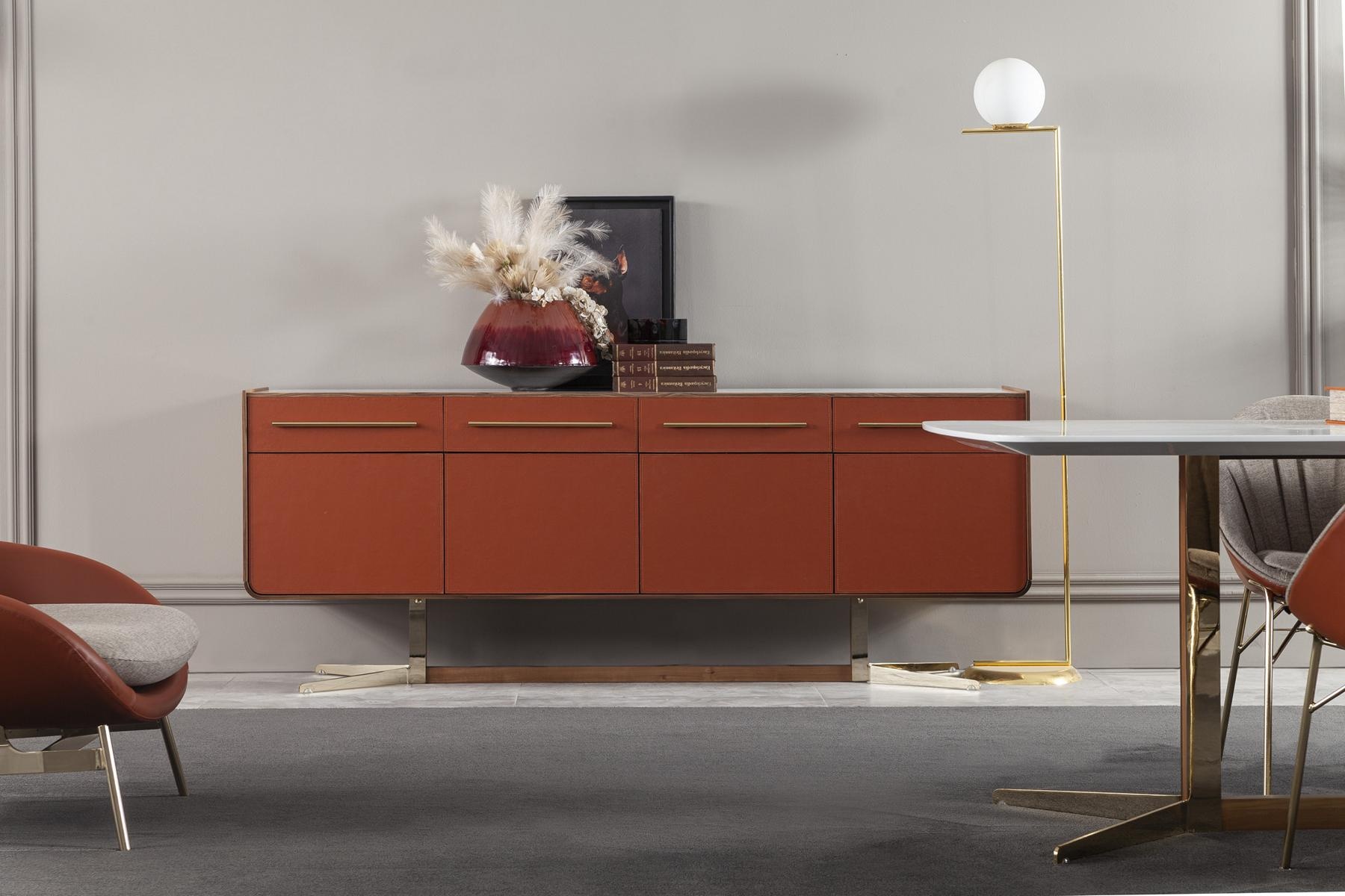 Dette orange skab med skuffer og hylder er en sand perle i enhver eksklusiv bolig. Med en generøs længde på 240 cm tilbyder denne XXL kommode ikke blot enestående opbevaringsmuligheder, men også en markant æstetisk tilføjelse til dit hjem. Den dybe brune nuance harmonerer perfekt med det strømlinede design, der udstråler elegance og raffinement. Hver detalje er omhyggeligt udformet for at sikre både funktionalitet og skønhed, hvilket gør det til det ideelle valg for den stilbevidste ejer. Efter 20 års erfaring i luksusmøbler tilbyder vores brand en enestående kvalitet, der sikrer, at dette møbel bliver en tidløs investering i dit hjem. Vælg dette skab for at indgyde dit rum en atmosfære af eksklusivitet og klasse.